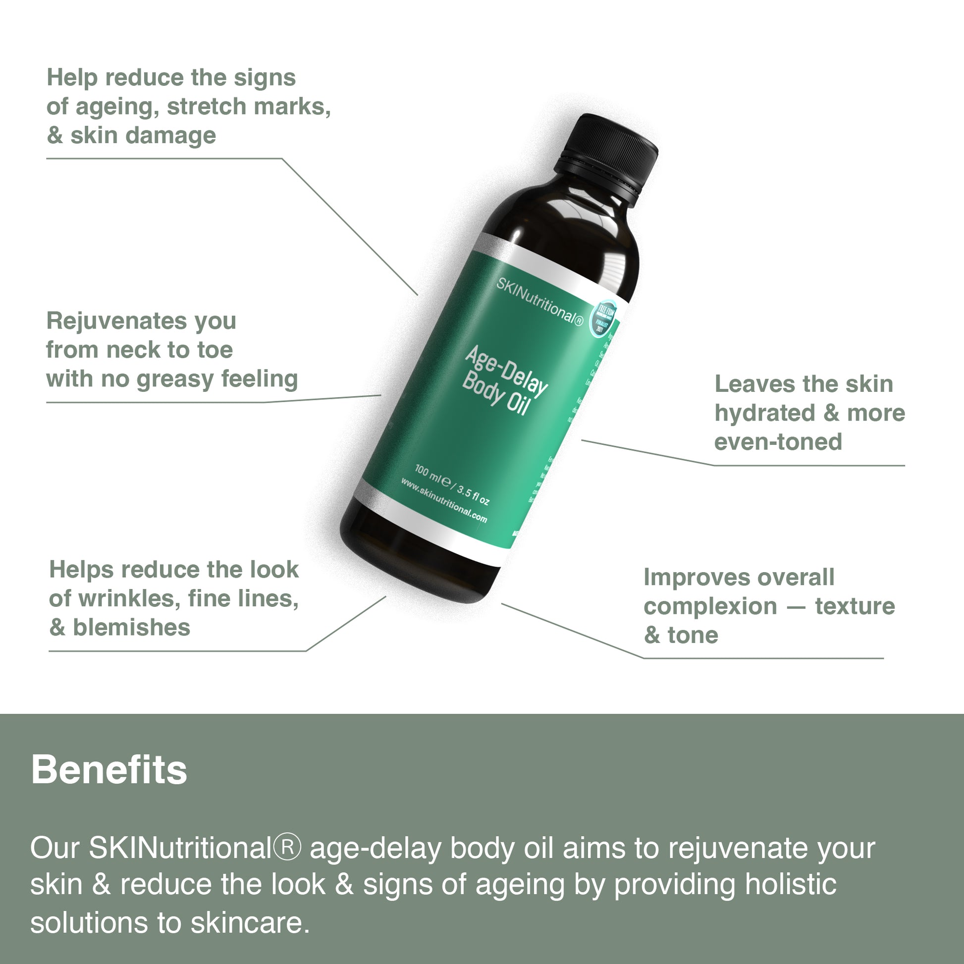 We are delighted to offer you the Age-Delay Treatment Oil for face and neck and Age-Delay Body Oil together in a jute gift pouch. Come with wooden gua sha lymphatic massage tool 9can vary in colour depending on type of wood) for face and body.